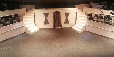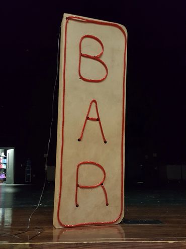 Here is a rough sketch of my high school auditorium. This is my first draft of the bar scenery for the static stage.